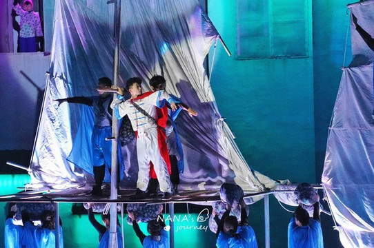 第一序章是新婚,高空缎带表演是整场表演最惊艳的部分,球体、人都是挂在高空中演出,一共有两次出场,这高度惊险程度让我们都捏了把汗,感叹不已。