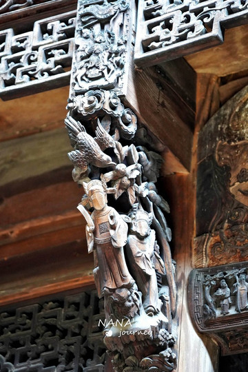 毕竟是经历过历史的产物,很多木雕的脸都因为某些时期而被削去,很是可惜,不过尚存的部分就已经让我们感叹匠人的精心手艺了!