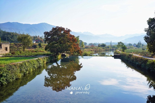 这个村落是离宏村不远的卢村,为了更好地探访,我们特地一大早就过来了,果然是我心中的样子。群山为背景,碧水环抱。