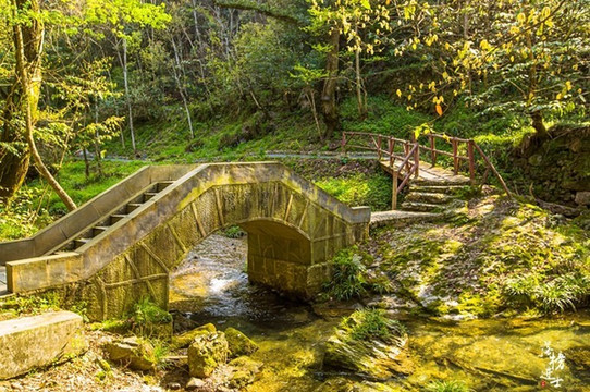 古朴的石桥架陈在小溪之上,桥下杂草丛生,桥侧苔藓遍布,仿佛已在这里默默伫立了生生世世。桥不大,笨拙的造型里透着一股精致,整个打鼓岭都给人这样一种感觉,虽然没有 黄山 的巍峨壮阔,却独自现出小家碧玉的沉静精致。
