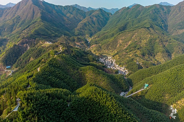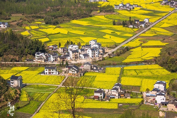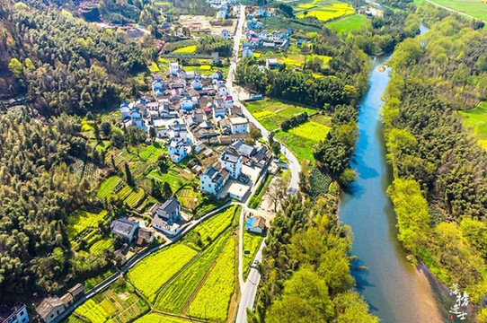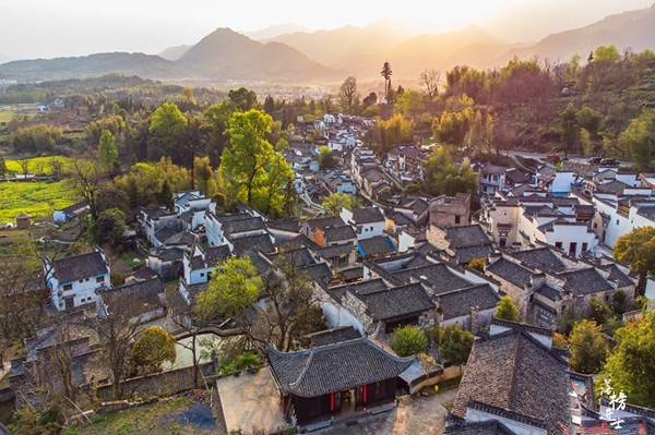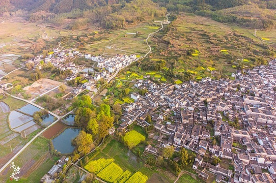 偌大的一个村落,密密地排列着青瓦白墙的民居,即使只是远远俯瞰,也能感受到人们在其中生活的气息。春天吹过村庄,鲜花盛放,草木发芽,整个村子都是生机盎然的模样。