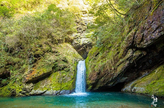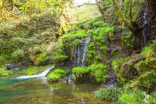 瀑布多,自然深潭多,走一段路就遇到一个潭,潭水清澈,泛着诱人的青绿色,有种山光明净,深潭倒影,心境空灵的意境。
