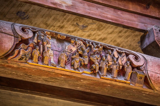 这里的木雕非常繁复,人物众多,是木雕中的瑰宝。