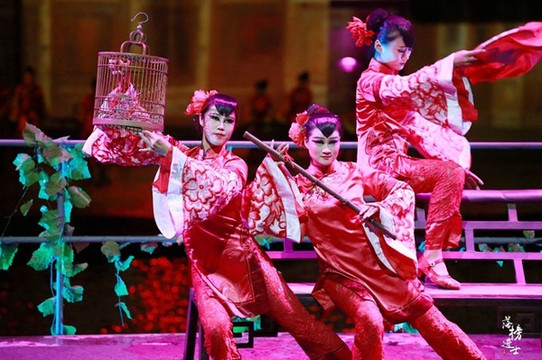 受儒家文化的影响, 徽州 女人恪守妇道,上得厅堂,下得厨房,这也是为什么在这片忠义的土地上有许多牌坊,尤以贞洁牌坊最多。踏着轻扬欢快的乐曲,夜空下的河水显得更加灵动,手中的刺绣和长笛曲艺流转,轻舒意广的舞姿将 徽州 女人的乐观执着刻画的淋漓尽致。