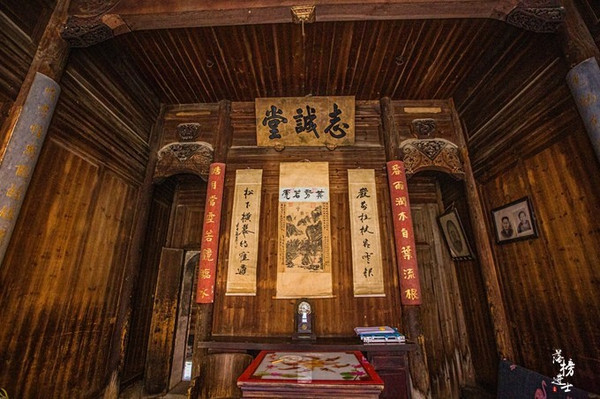 走入志诚堂,整体感觉并不大,全部为砖木结构,盛放着水的大水缸据说是有敛财的作用。