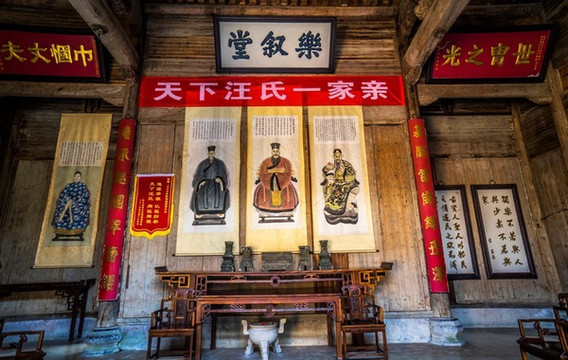 千百年的历史中, 徽州 的强宗大族历来聚族而居,宗祠便成为维系宗族传承的重要建筑。行走在 徽州古村落中,总能见到那些留存至今的宗祠——正堂中高高悬挂的祖宗肖像画极显庄重,昭示着家族的根和荣耀,供后人瞻拜,也警示晚辈,让后人在不断的仰视和敬重中,维系整个宗族的精神家园。毕竟,无论个人还是家族,留住了精神,才留住了魂。