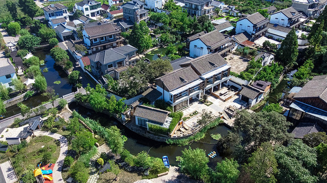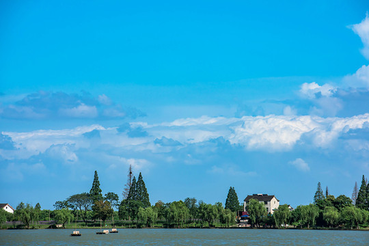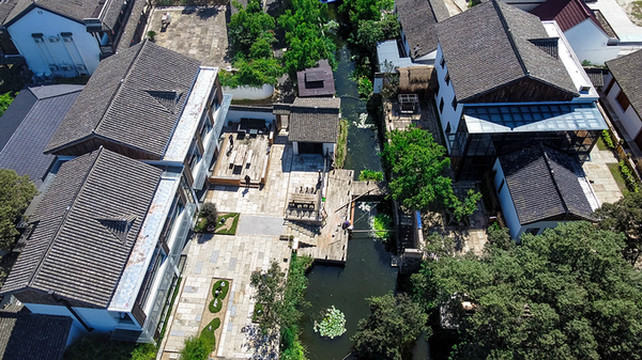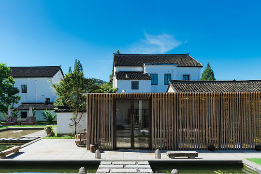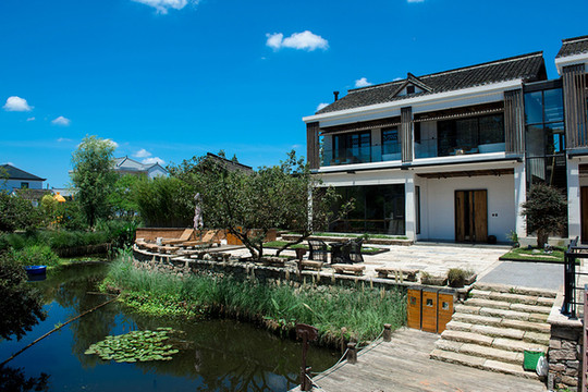 站在窗边,上可以观赏似乎不染一点尘埃的湛蓝天空,远可以眺望碧水绿树、水上小周,近又可以欣赏庭院景致。再来些开胃点心,清甜爽口,一天的疲惫倒也悄然散去。客栈很大,庭院里甚至可以泛舟,水中有荷,三五好友提些好酒,拿几碟点心,围坐在小舟上,赏着风景闲谈,兴致来了,对着周围的景物赋诗一首或举行个茶话会也未尝不可。想来魏晋时期建安七子的乐趣也不过如此罢!