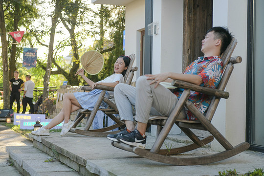 不光可以参观展览。游客们还可以尽情体验,乡村民俗体验是南北湖商玉客栈主推的文化体验类活动,游客们可以根据自己的喜好选择喜欢的活动类型。就是不擅长这些活动。自有专人来指导,做尺糕、烧土灶、割稻子、还有抓泥鳅、钓龙虾、庭院瑜伽、趣定向等趣味十足的活动任你选择,项目之多,总有一样对你的胃口。活动过程也是非常愉快的。天南地北的朋友们齐聚一堂,认识的不认识的都可以互相合作,不知不觉大家都熟络起来,于是不认识的变成了认识的,刚认识的又可以发展友谊,何乐不为?在活动中,或许你会有一种儿时的感觉,有些童年和小伙伴们的趣味活动再次被拿出来,并且进行更符合环境的加工改造,自是别有一番风趣。除了回忆,最重要的是这些活动还融入当地的民俗文化,活动结束,游客们会对海盐地区的风俗文化有可感可知的认识。