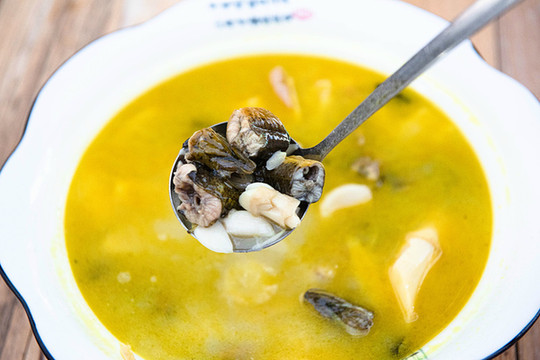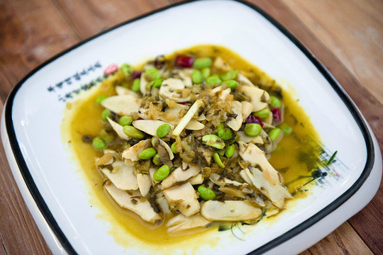花生,花生,长生不老。花生脆口鲜香,是客栈自己所种的农作物。咸菜鞭笋,有一个美好的名字——子孙绵延,“笋”是“孙”的谐音,桌上有笋,即意味着子孙绵延不断。