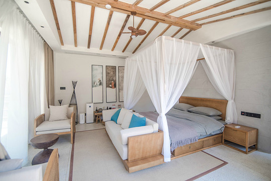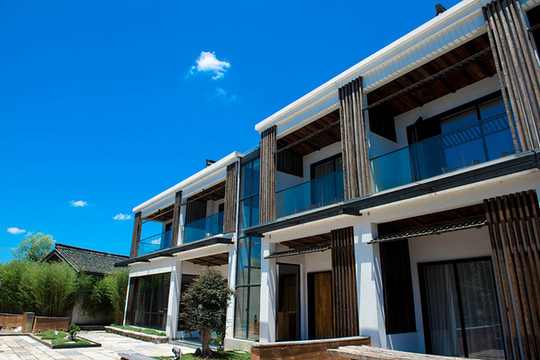 客栈把自然木质元素运用得顶好,连洗漱间都运用到木质因素,洗漱时也能闻得到木香。各个房间的陈设是不同的,但相同的是自然的木质结构。躺在床上看着房顶的木质房梁,颇有回到古代之感 房间是落地窗式的结构。