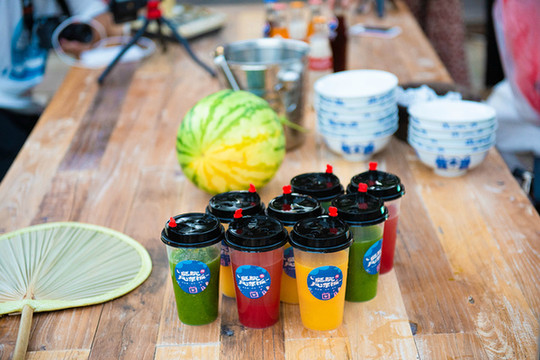 还有酱油拌饭、盐水河虾、酱爆六月黄、茄子蘸酱油、黄鳝地卜鞭笋汤醋鱼汤……各种有着美好寓意的吃食点心,不仅有着文化底蕴,口感也是一级棒。配着客栈现榨的果汁,喝上一口,醇香浓郁。若是沉浸其中,便觉身处果园。果汁是即摘即榨,若是有兴致,可以自己体验榨果汁,这就保证了没有任何添加剂,也能保留新鲜水果最原始最纯真的味道。