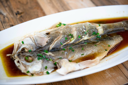 在这里,我们能吃到在展览馆里见到的风味美食——澉浦八大碗,清蒸鲈鱼——预示年年有余,财富如钱塘江水,源源不断。鱼肉现象滑嫩,清爽可口。