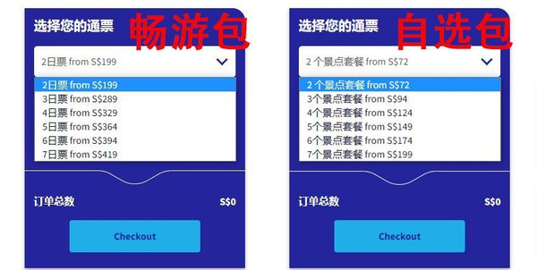 畅游包:按天数定价,有2日、3日、4日、5日、6日和7日票不同选择。景点全包,在2天至7天时间内无限制打卡景点或体验活动,适合旅行时间短、体力充沛的打卡型游客。比如:上述几个景点门票价格达到231.9新加坡元,如购买2日票则话费199新加坡元,如此节省了32.9新加坡元,如果你有时间还能再玩其他景点,玩得越多,省得越多,最高节省40%门票费用。