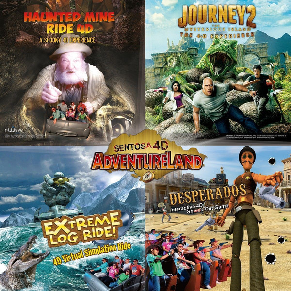 圣淘沙4D 探险乐园位于英比奥山顶景区,拥有多项娱乐设施,包括4D魔幻剧院、运动模拟影院和动感DESPERADOS,让你沉浸在四维世界里,感受惊悚的感官体验,带给你无限的欢乐与刺激。