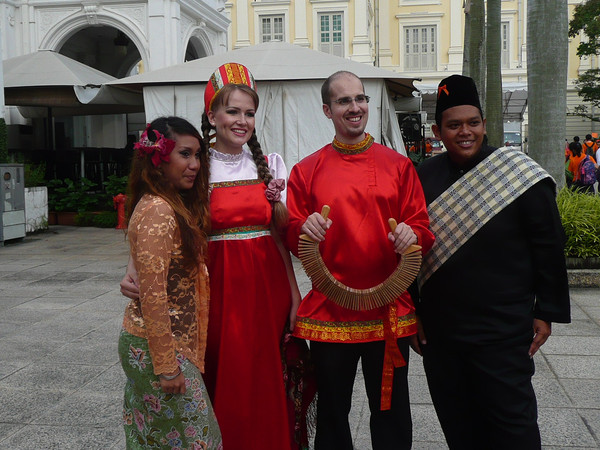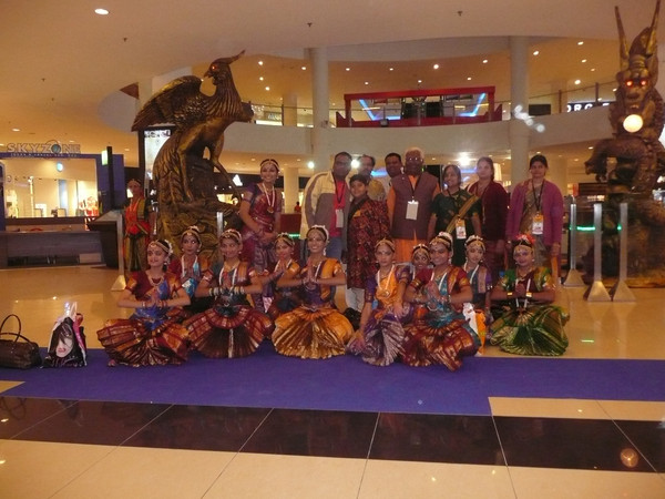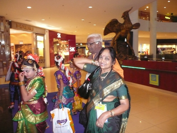 回到酒店,购物中心正在举办国际民间文化节的演出,很多国家的人身穿漂亮的民族服装表演最具本国特点的民族艺术节目。可惜没有看见中国大陆的文艺团体,台湾的一个民间歌舞团是这里注目的焦点,演出结束后大家都围上去合影。