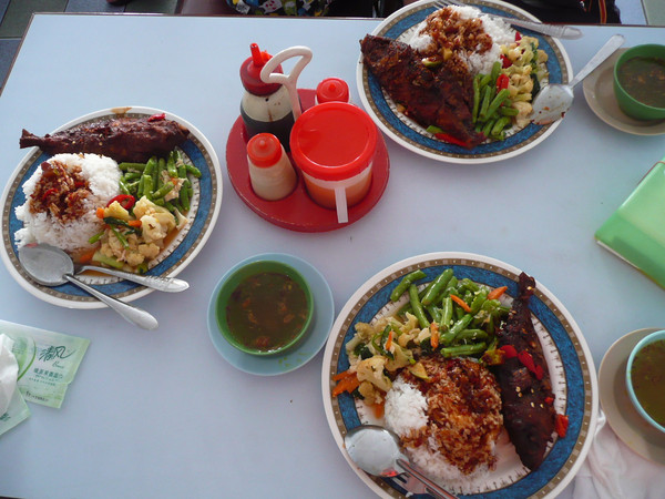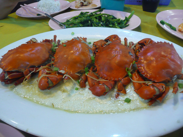 休息够了,晚上坐班车再次进城吃饭。著名的双天餐厅,四只大海蟹才12马币,而一盘炒蔬菜竟然15马币!虾也很新鲜便宜。