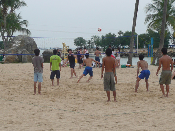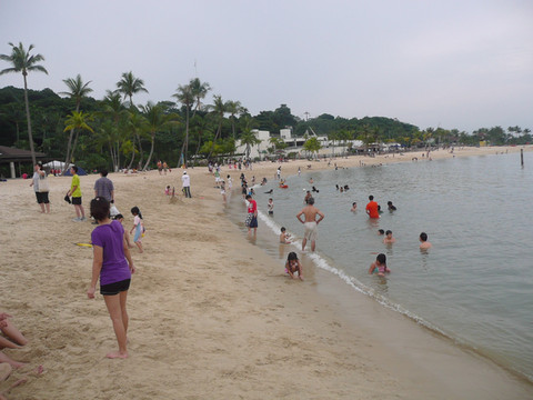 圣陶沙海滩由三个各具特色的海滩组成:丹戎海滩,巴拉湾海湾和西乐索海滩,他们绵延3公里。我们去了中部和西部的巴拉湾海湾和西乐索海滩。海水不好,比较脏,远不如沙巴的海滩。沙滩体育、游戏设施不错,有排球场、足球场、篮球场。海滩边的公路可骑车、轮滑。