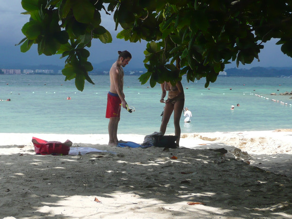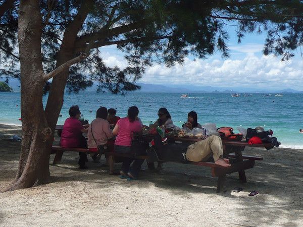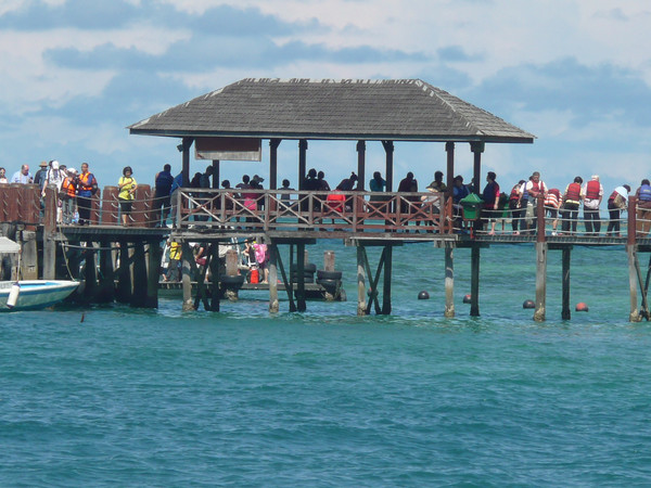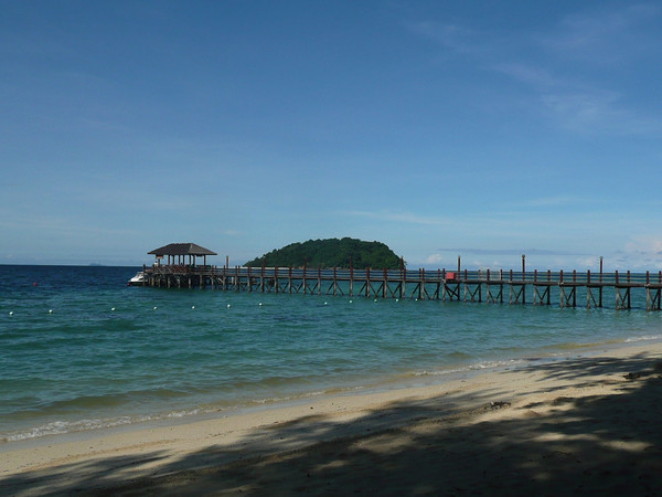 在这里玩到12点然后乘船去沙碧岛(Sapi),这里椰林树影,水清沙幼。珊瑚礁离海岸很近,适于潜水。这里的海里鱼类丰富,五颜六色的热带鱼。
