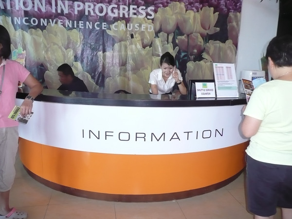 晚7:30乘免费班车进城。免费班车的服务台在购物中心的北门,从Tune酒店出来,穿过商场就到了。乘坐免费班车要预约登记,开车前10分钟领票。上午每一小时一班车,从九点开始,整点发车;中午休息,下午两点以后,每半小时一班,到晚上10点。