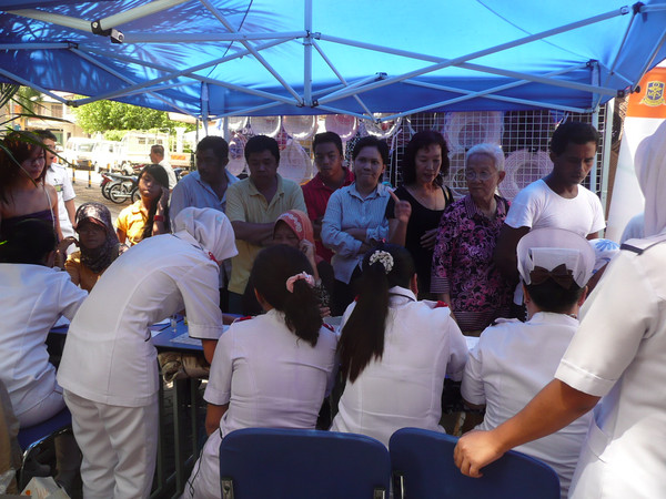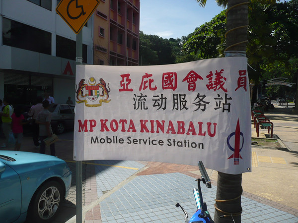 亚庇市的国会议员在这里开了一个流动服务站,向选民提供各种帮助。医疗机构也在这里开办义诊活动。
