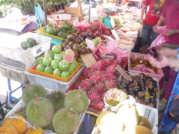婆罗州一号(1Borneo)离城市中心约10公里,市里班车站附近就是著名的菲律宾市场,这里水果太便宜了,切好的混合水果1马币一盒,山竹3马币(6块人民币)1公斤,红毛丹4马币1公斤。我们买了2公斤的山竹,非常新鲜。