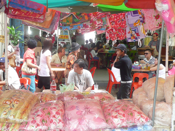 9:00乘第一班免费班车进城。在街角“旺角茶餐厅”吃早餐,配有蔬菜、大虾的炒面和印度拉茶。然后去周日市场(Sunday Market)。