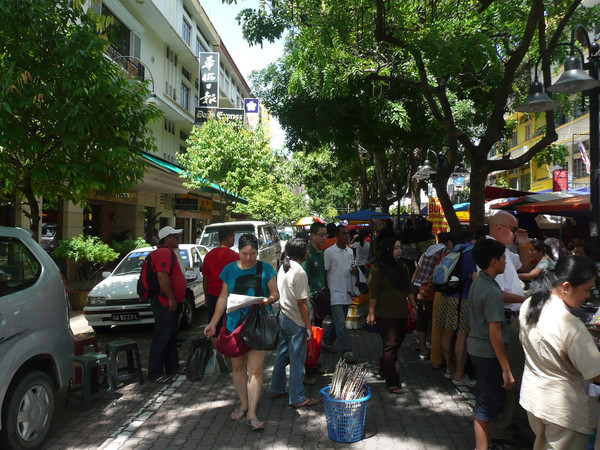 周日市场在Gaya 街,来自各地的游客和本地人好像都集中到了这里。摊档一个挨着一个,货品挂摆令人眼花缭乱,琳琅满目的手工艺品奇特又可爱,有手提袋、小钱袋、木制相框、民族小娃娃,还有风铃、手链、颈链、戒指、扣针等色彩缤纷的装饰品,以蜡绘图印记而成的衣裤,印有“沙巴”字样的形形色色T恤等。11马币买了两件T恤。
