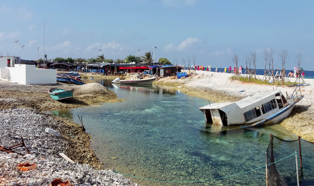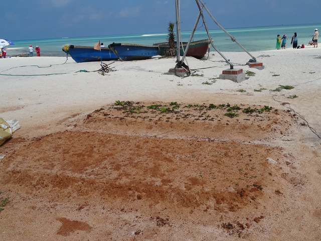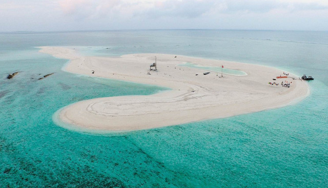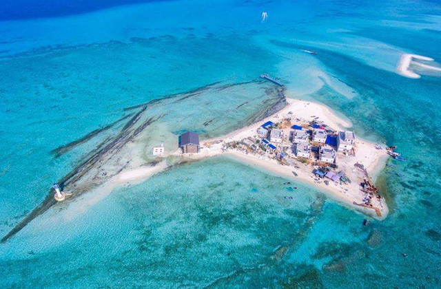 岛中间有一个泻湖,是典型的珊瑚成岛。