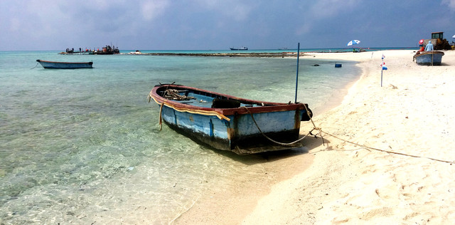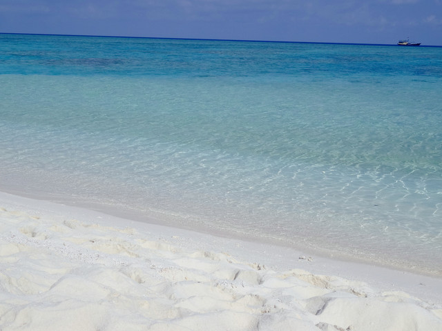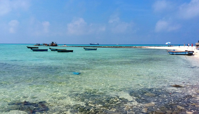 和银屿岛不同,鸭公岛上没有一点细沙,是由细小的零碎珊瑚石和贝壳堆砌而成。