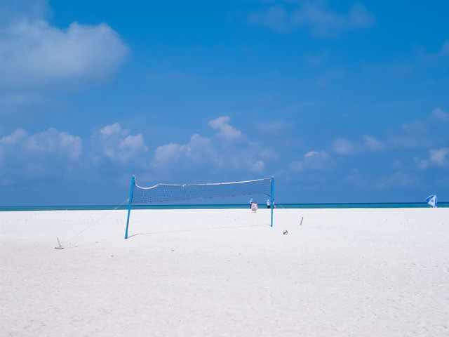 全富岛的沙更是迷人,细软白亮,不但颜值高赤脚走起来更是非常舒适,于是管家门在这里搭了个沙滩排球网,的确是打排球的好地方。