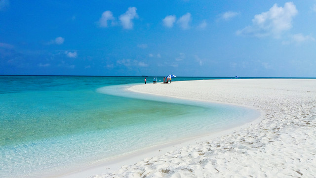 最美的还属全富岛的那一处海湾,细腻白皙的银沙在这里铺撒成了一弯玉带,线条弯曲优美,一边是清绿的海水,透明到发亮,一边是纯净的沙滩,纯净到无痕,让人的目光转过来就不想抽离。