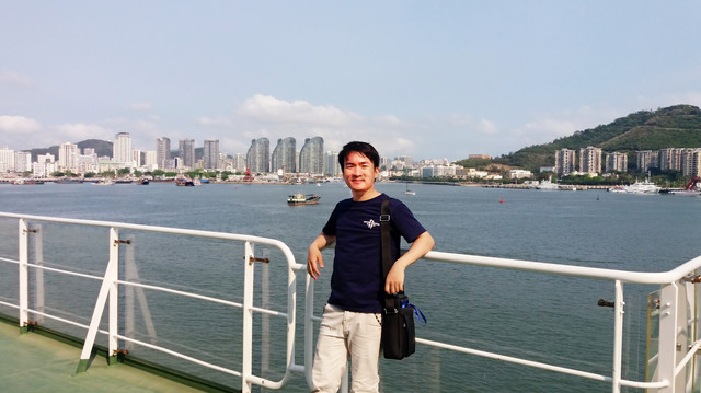 夕阳渐渐西沉,上游轮后,不忍离开的我眺望着游轮四周的风景,可以看到打完渔收工的渔船。
