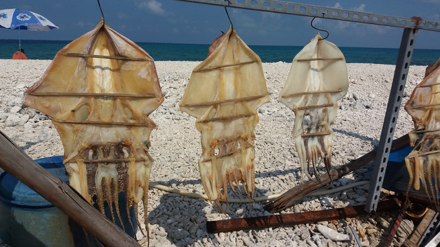 登岛时是阳光正烈的下午三点多,我们走进岛民开在遮阳棚下的餐馆,点了两道海鲜,从物质经济而非仅仅是精神上支持生存不易的岛上渔民,顺便也躲避一下暴晒的烈日。