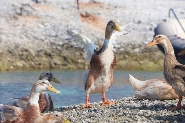 带我们游岛的管家告诉我们,如今岛上常年生活居住着四十几位渔民,他们用钢筋、木板外裹油布搭起的简易房子,是鸭公岛上最别致的一道风景。毕竟当大海包裹,人迹罕至时,人就成了最稀缺的风景。