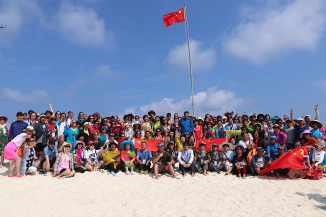 我经历过无数升旗仪式,这是到目前为止最难忘的一次,因为这是在我们普通游客可以抵达的祖国最南端的疆土上进行升旗,对那些觊觎我们南海主权的国家来说,这就是一种宣示主权,毕竟越南人可不敢也不能踏足此间。升旗结束,管家给我们所有兴奋的小伙伴们照下合影,能在这里为祖国升起一面国旗,已是不虚此行了!