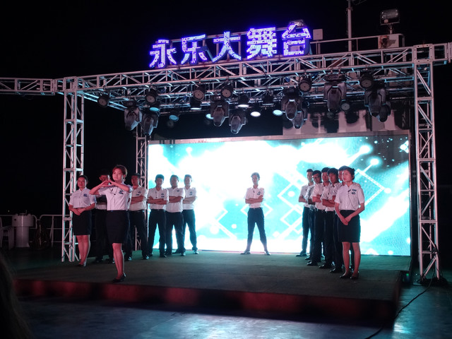 游完鸭公岛的当晚,为了给我们打发夜晚的无聊,在游轮甲板的永乐大舞台,准备了精彩的文艺表演。