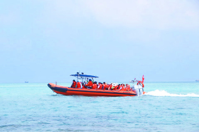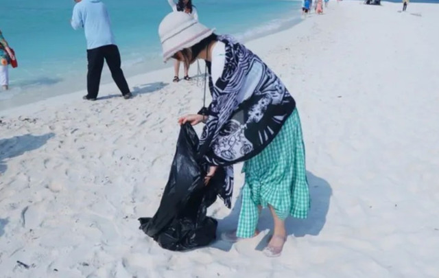 除了赏风景,我们今天的银屿岛之行,还有要做的非常重要的一件事情,就是捡拾岛上的垃圾,爱护西沙,做环保卫士。船上游客多,每十人一队,安排一名工作人员即管家管带,上岛后,管家们人手一个黑色的垃圾袋,带着游客和管家一起拾垃圾,保护我们的西沙永远是一块净土!