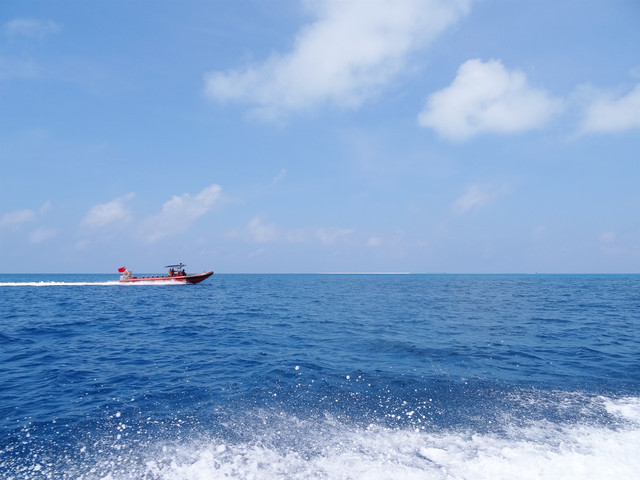 中午时分,随冲锋舟离开全富岛返程,最后遥望了一眼全富岛,大海蓝得深邃,远去的全富岛则像海中的一条大鱼,耳畔也不禁响起了周深的那首《大鱼》:“海浪无声将夜幕深深淹没,漫过天空尽头的角落。大鱼在梦境的缝隙里游过,凝望你沉睡的轮廓。看海天一色,听风起雨落,执子手吹散苍茫茫烟波……”有些歌,总要在特定的情境里才能理解,在西沙的大海里,看海天一色,我听懂了《大鱼》。