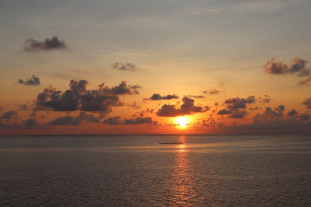 新的一天从日出开始,海上日出无比壮观,先是朝霞被染红于天际,再是那轮美丽的红日从地平线上缓缓升起,所谓旭日东升、光芒万丈在大海之中看得最为直观。