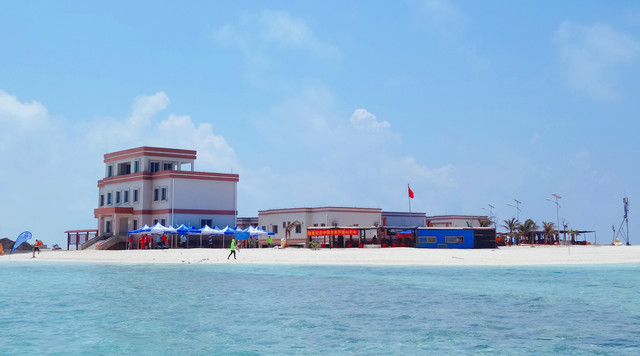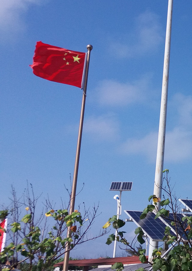 升完旗,继续在岛上逛了逛,向远处看,可以看到岛边的海域上有好几条渔船在捕鱼。向近处看,可以看到一处上面覆盖有太阳能电池板的建筑,那是建在岛上的一个手机信号基站,以方便这里的渔民通信,我们的手机之所以会有信号,也是这个基站的功劳。小岛无人,却有祖国的科技关怀,足见三沙市成立以后,随着我国对西沙群岛开发的重视,岛上渔民们的生活条件已得到很大改善,建设的房屋、基站此行我们已亲见,据说还有专门的补给船会定期来给岛民运输物资。那么如今随着西沙区和南沙区的成立,以后渔民们的生活定能越来越好。
