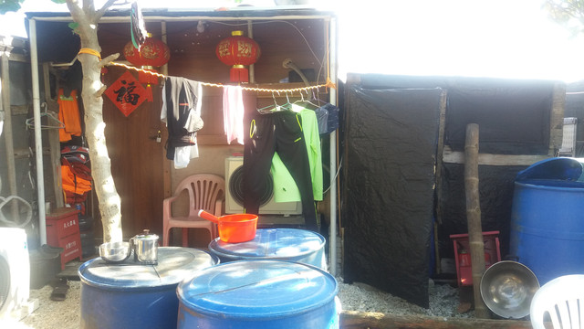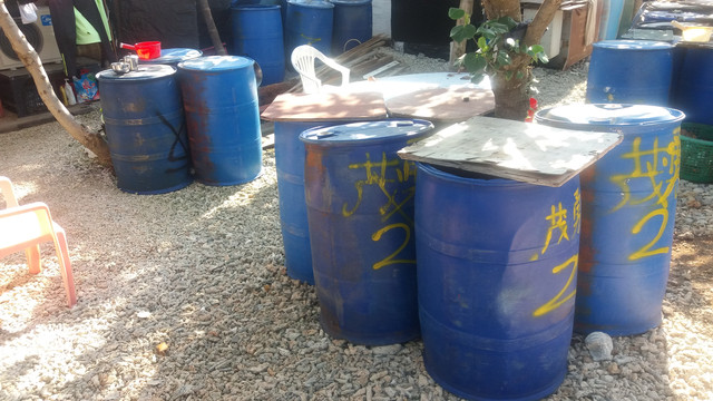 我们在岛民的居住区简单参观了一下,发现每家每户都有好几个这样的大桶,里面储存的是最珍贵的生活必需品——淡水!