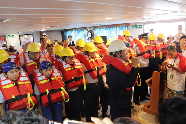 晚饭后,永乐大舞台也举行了最后的演出,主题是分享感受、分享照片还有道别。这次连游轮上的厨师和服务生们都上台表演了。