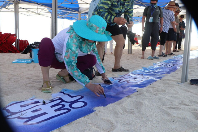 离岛时,每一位上岛的游客也在环保倡议条幅上签字,美丽的西沙群岛是未经开发的处女地,中国最美的后花园,爱护西沙环境,要从一不带走一粒沙子,不留下一颗垃圾做起!