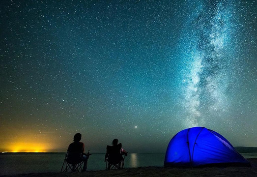 夜晚在星空、大海的环绕中入睡