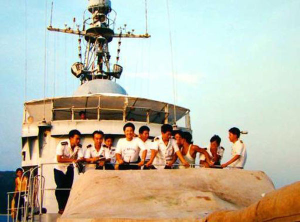 1992年8月20日中午,当我们准时赶到军港时,由于风浪大,一直拖到下午3点多也未成行,并最终取消了此次航行。我们乘兴而去败兴而归。谁知当晚卢干事为我们带来了令人兴奋的好消息,原定的运输艇不坐了,改乘当日傍晚6点半启航的一艘前去西沙换防的694猎潜艇。