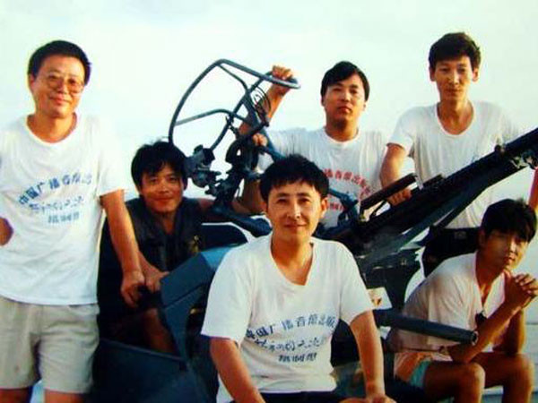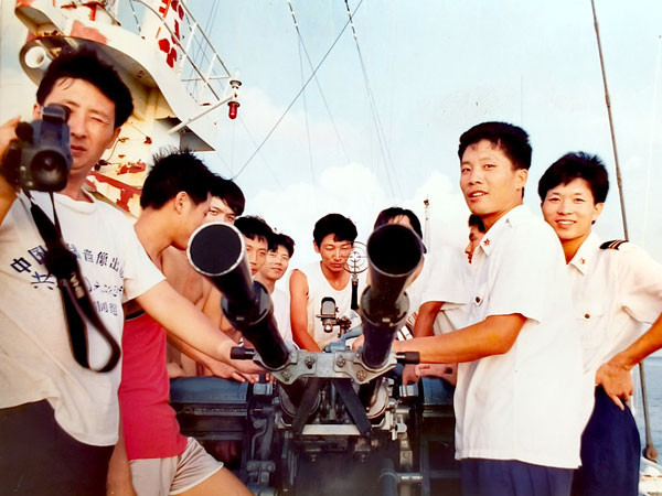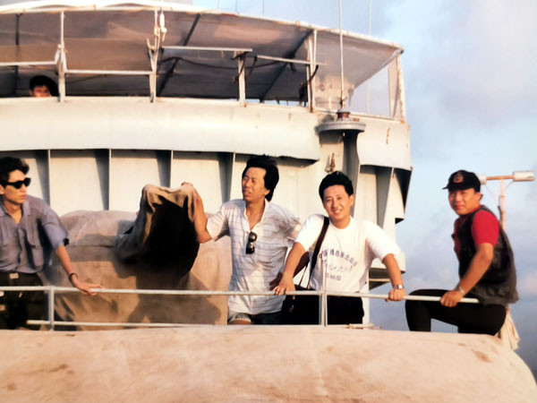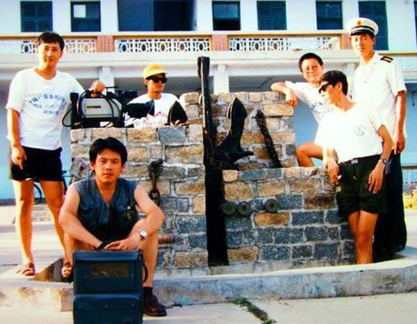 由于当时气氛热烈,再加上光线也不太好,所以大家什么都没发现。直到第二天清晨那位首长来码头送行,还是剧组的一位同志眼尖,发现了首长雪白的军服上有一个连他自己都还不知道的血手印。大家一回忆,才想起是昨晚那位老兄的杰作,为此全都开心地笑起来。在欢乐的气氛中,我们和前来送行的部队首长们一一握手话别,然后登上高速炮艇驶离了永兴岛。