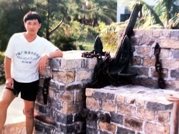 锚链雕像前留影(摄影:潘保良)