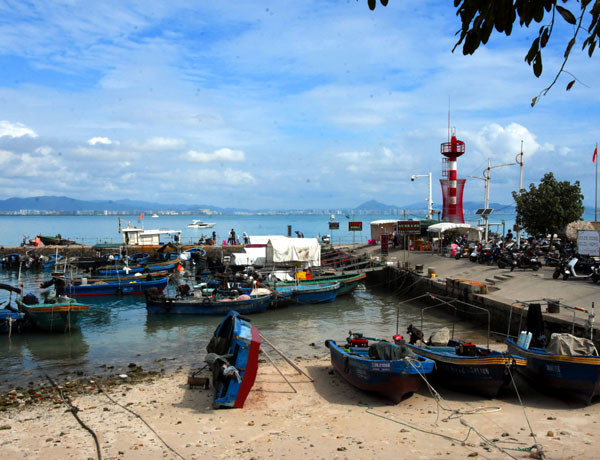 结束了珊瑚岛的拍摄后继续向琛航岛进发,途中,我们分别经过了甘泉与金银两岛,虽然没能登岛,但能尽情地翘首远眺两岛的美景也算不虚此行。在即将抵达琛航岛时,我们一眼望见在码头上迎风而立的一排军容整齐的海军战士列队迎候,顿时,一股暖流涌上心头。