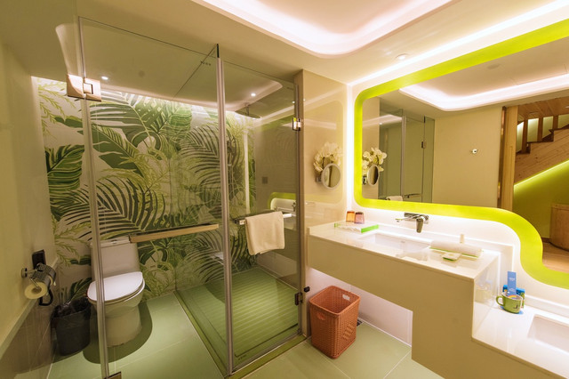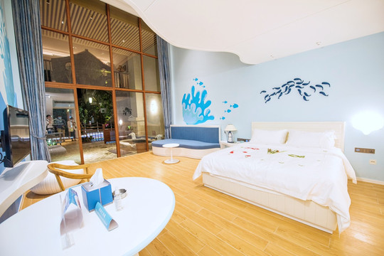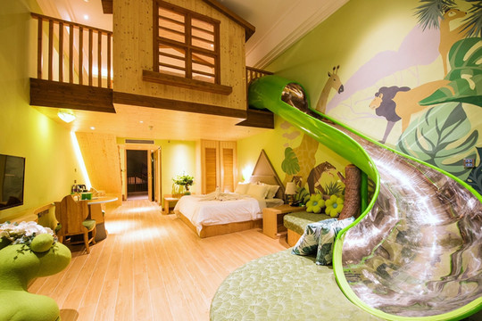 这家酒店的客房入住率很高,很多来玩儿的人都是一家老小,强烈推荐他们家的亲子主题复式套房,包括森林、星空、海洋三大主题,引偏硅酸含氡真温泉入户,让大人小孩都可畅享森林里的度假时光。