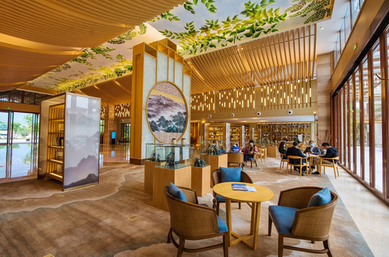 休息的书吧也非常的典雅舒适,内饰低调奢华,适合三五好友商务洽谈或者安静的来此看书喝茶。